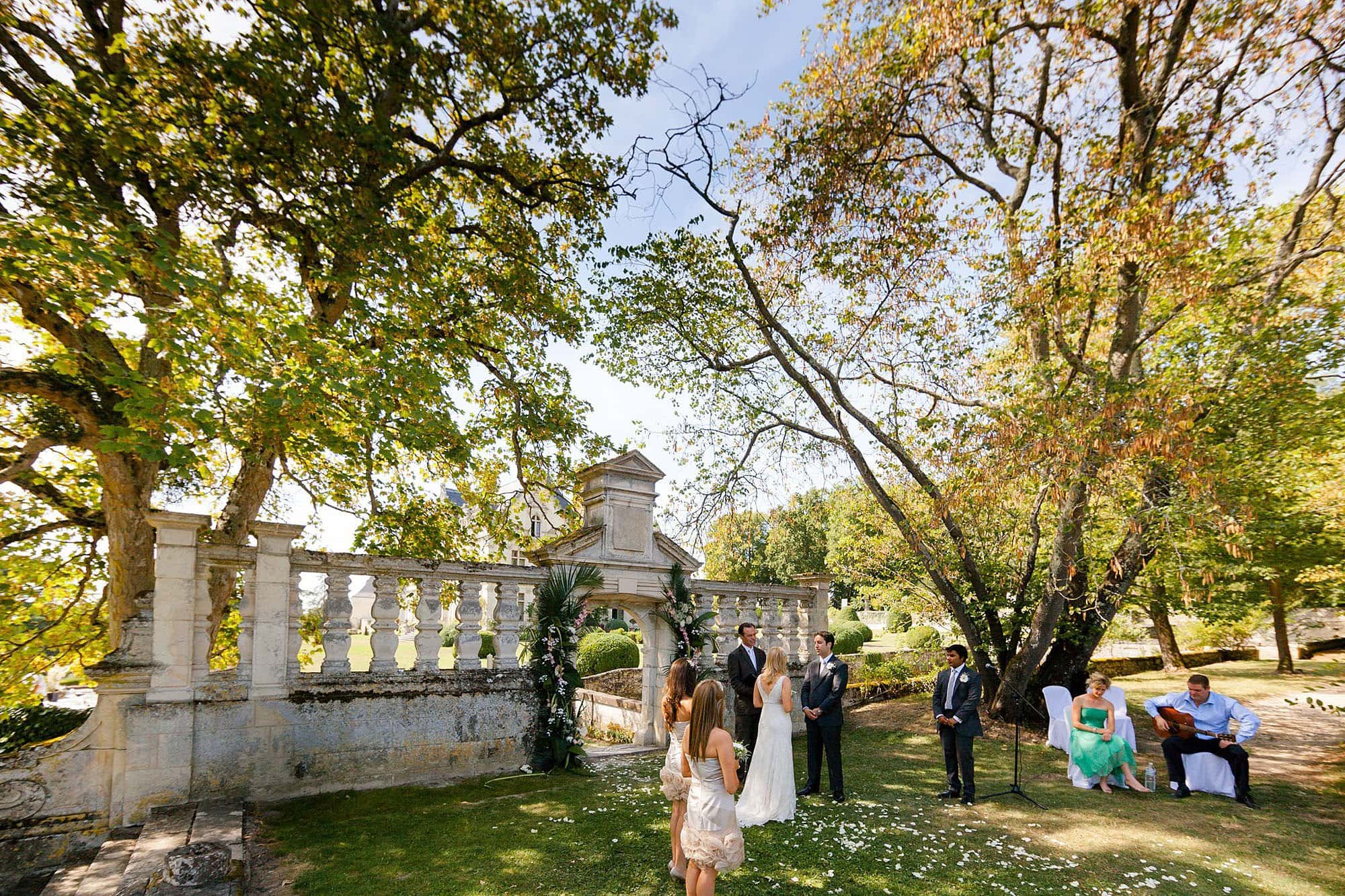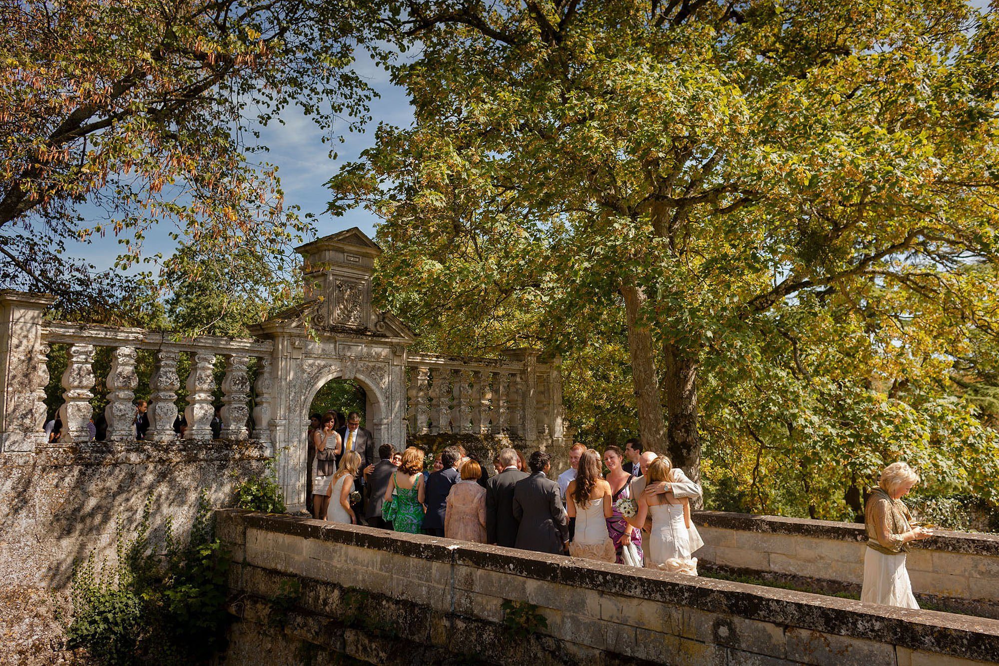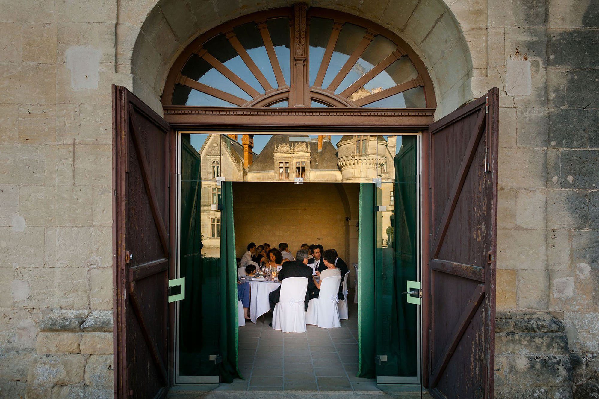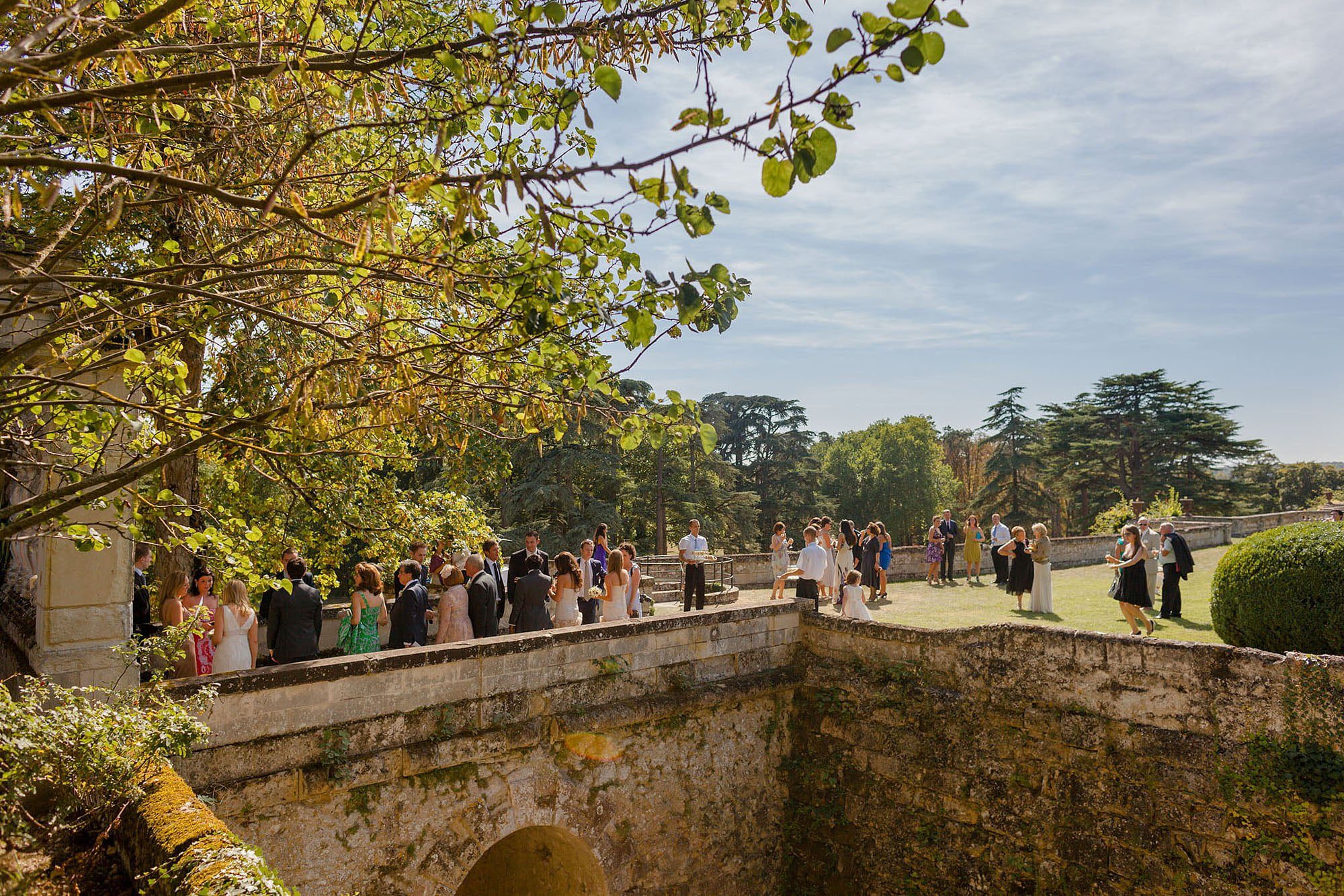 I am a big fan of French wedding ceremonies that tend to start later in the day. Much cooler and much less hurried. If you are celebrating your wedding in France, it’s not unusual that you will need to get legally married before the day. You can have either a civil ceremony in the UK or a legal ceremony in France, depending on your nationality. Orla and Nima had a humanist blessing in the grounds of the chateau. I thought it was an incredibly romantic and very emotional ceremony. I liked the short walk from where they had chosen to have their blessing to the reception in the shade of the main house. A gentle afternoon of enjoying delicious canapes and wandering the grounds. As the sun settled on the horizon, everyone settled into the hall for the evening meal.