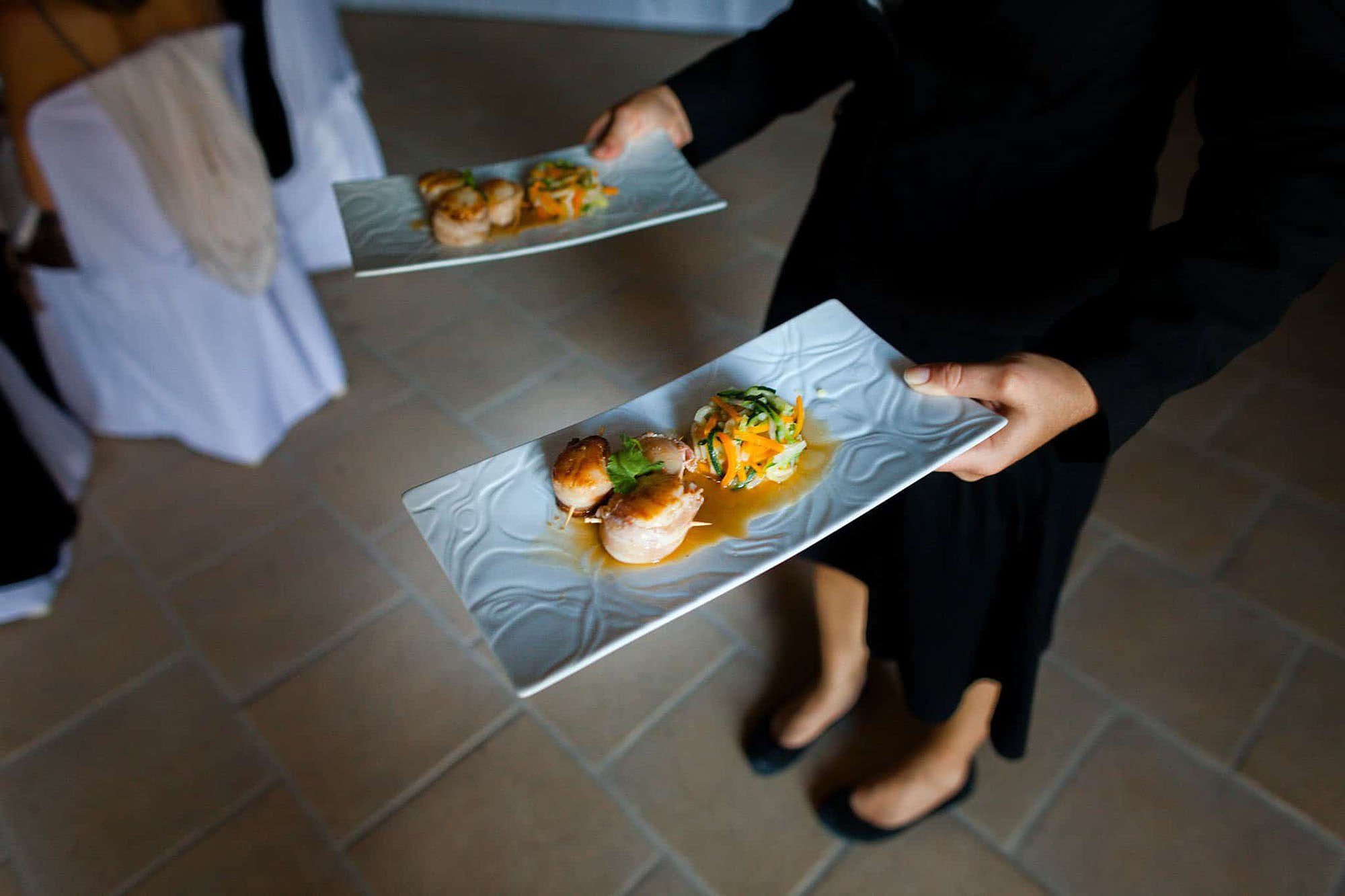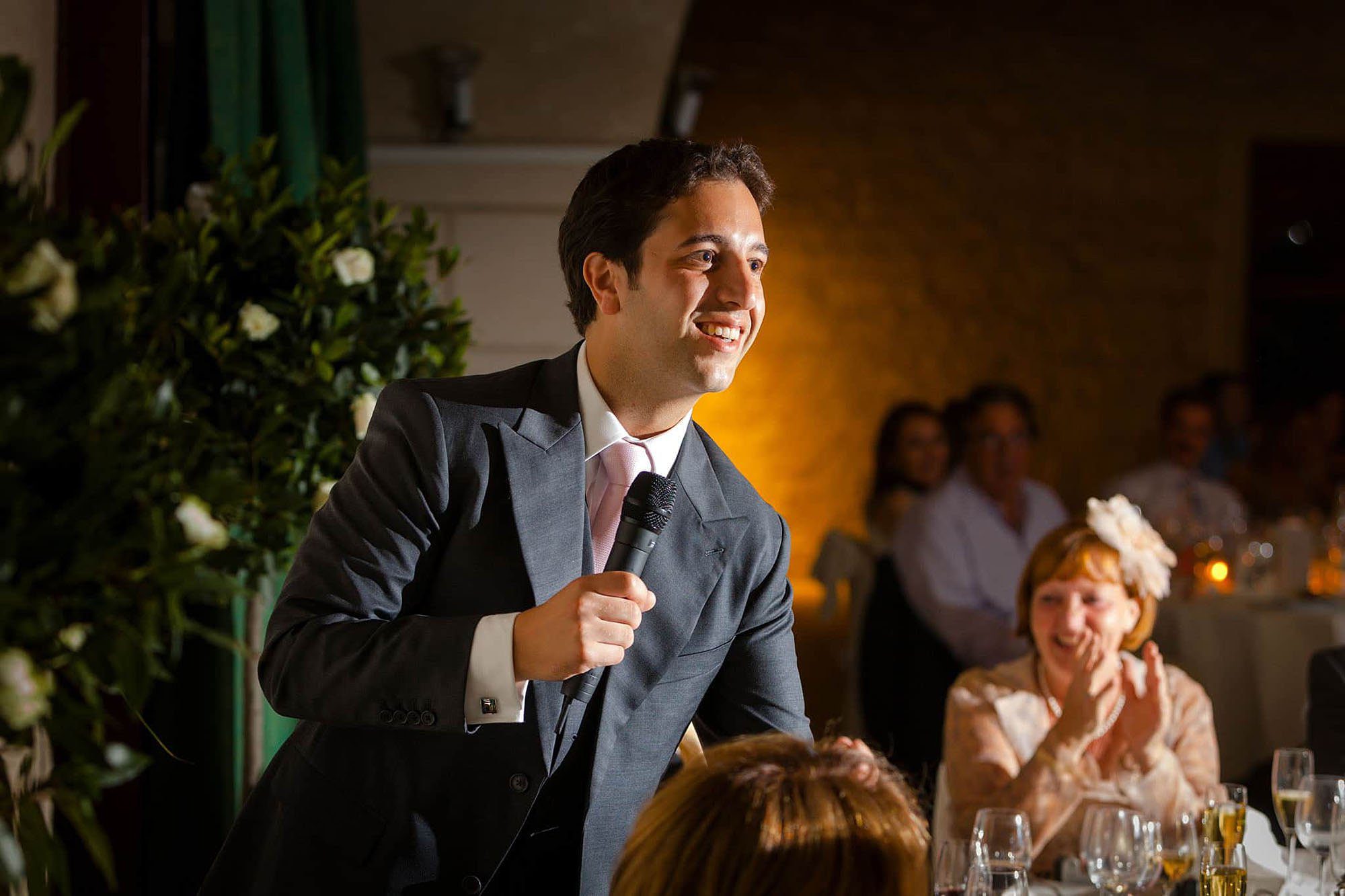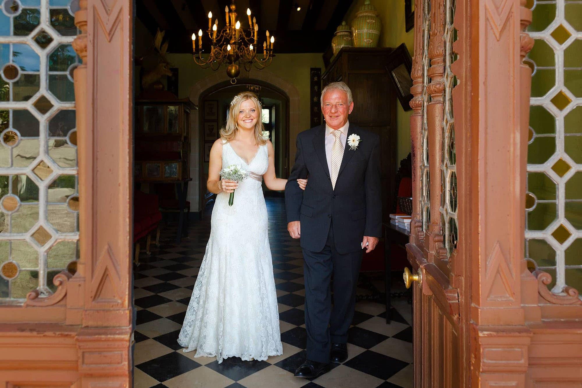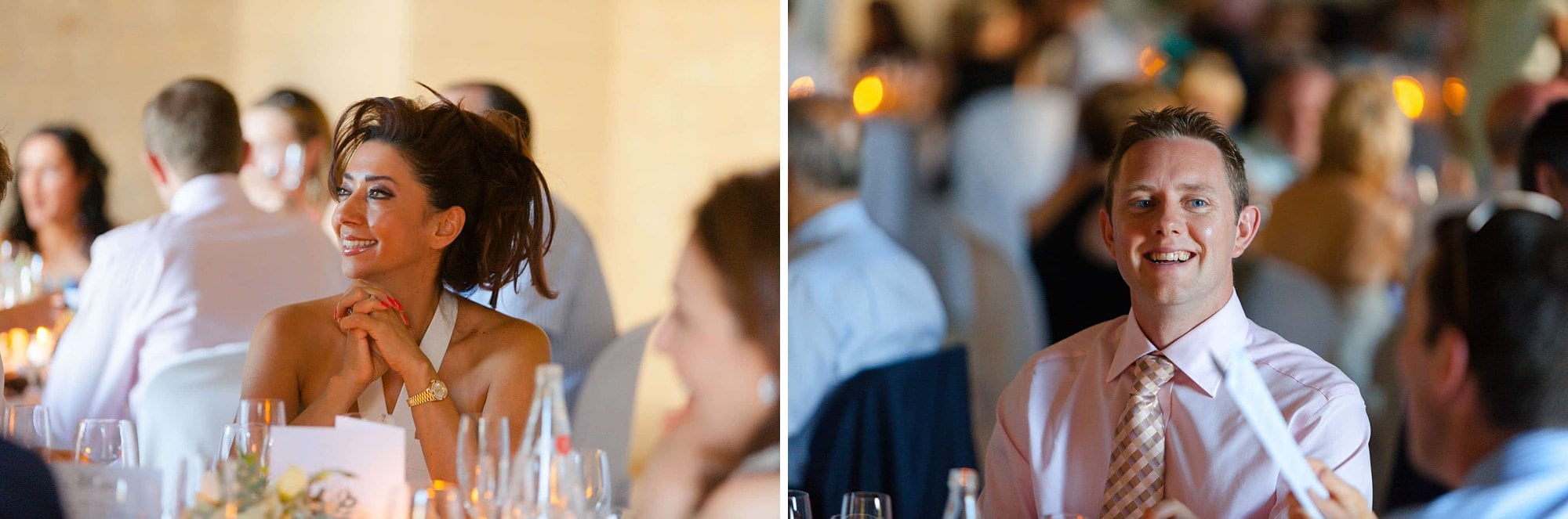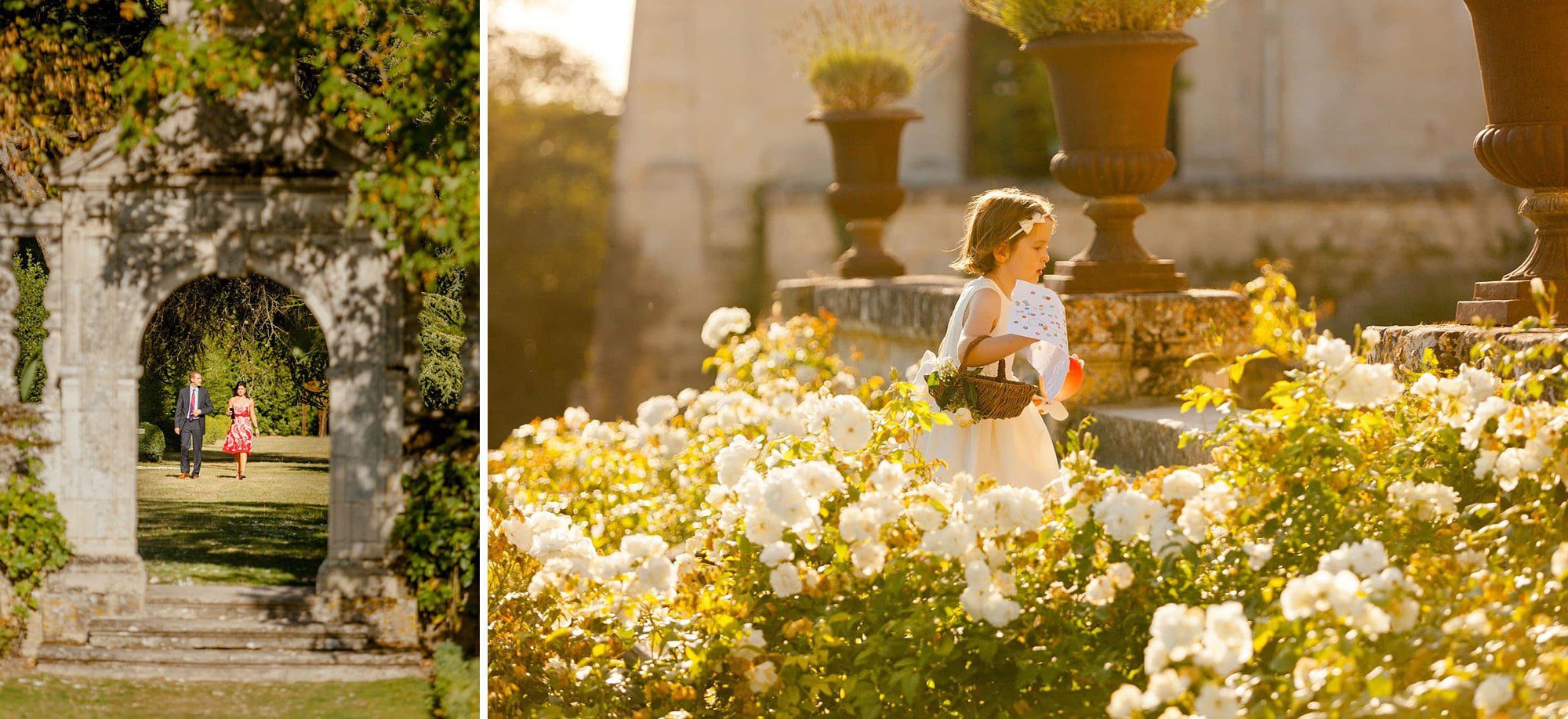 I am a big fan of French wedding ceremonies that tend to start later in the day. Much cooler and much less hurried. If you are celebrating your wedding in France, it’s not unusual that you will need to get legally married before the day. You can have either a civil ceremony in the UK or a legal ceremony in France, depending on your nationality. Orla and Nima had a humanist blessing in the grounds of the chateau. I thought it was an incredibly romantic and very emotional ceremony. I liked the short walk from where they had chosen to have their blessing to the reception in the shade of the main house. A gentle afternoon of enjoying delicious canapes and wandering the grounds. As the sun settled on the horizon, everyone settled into the hall for the evening meal.