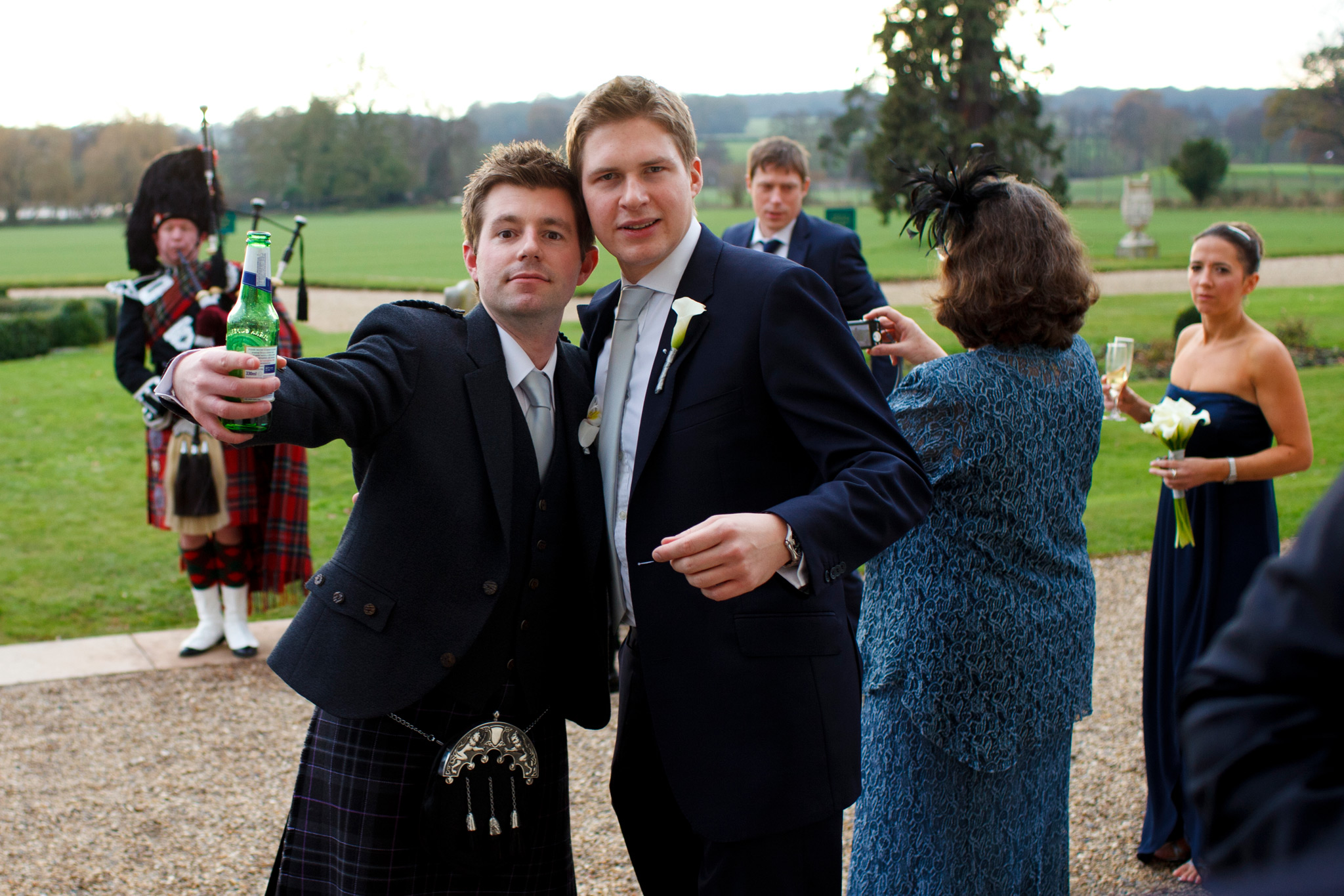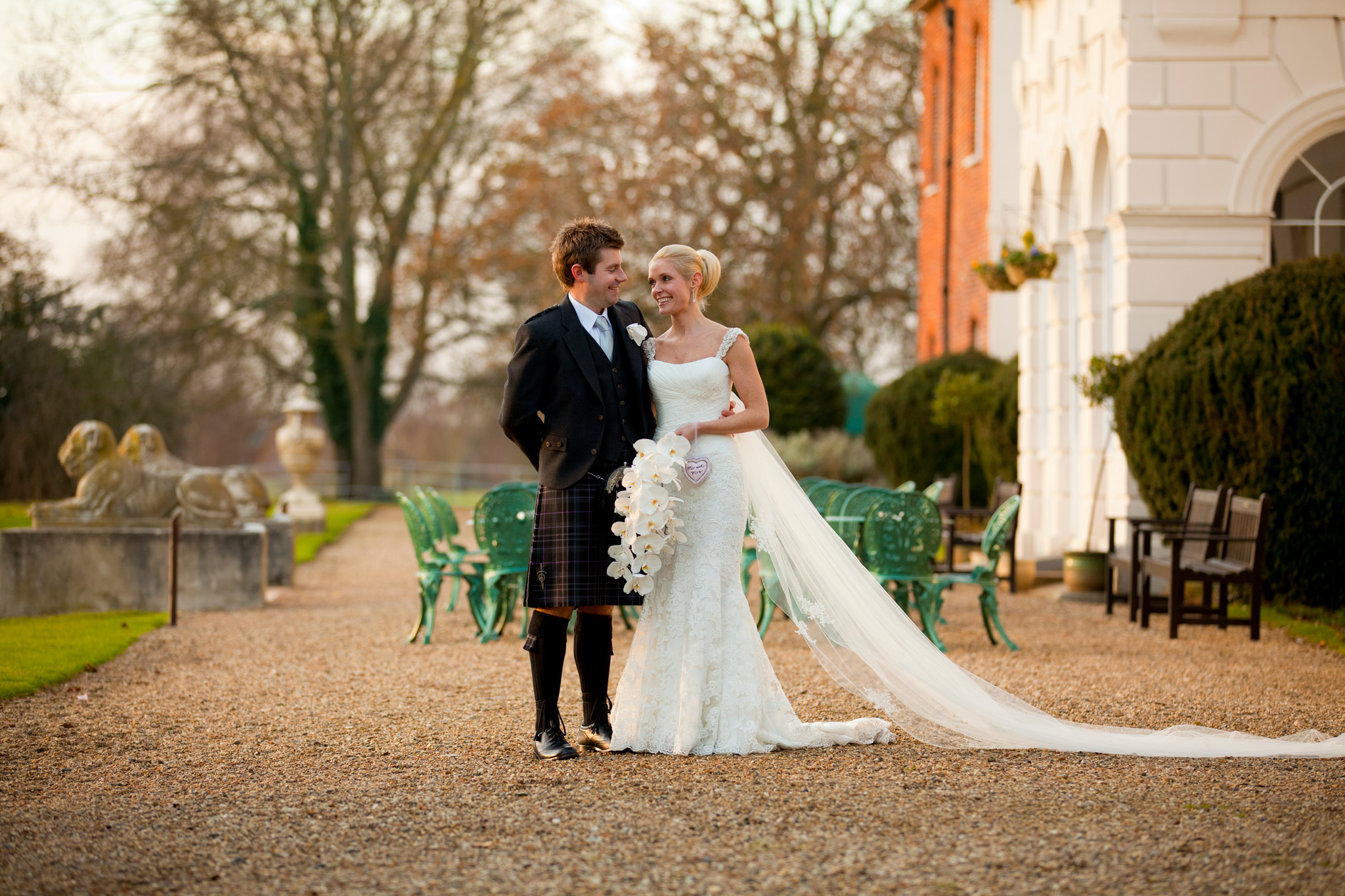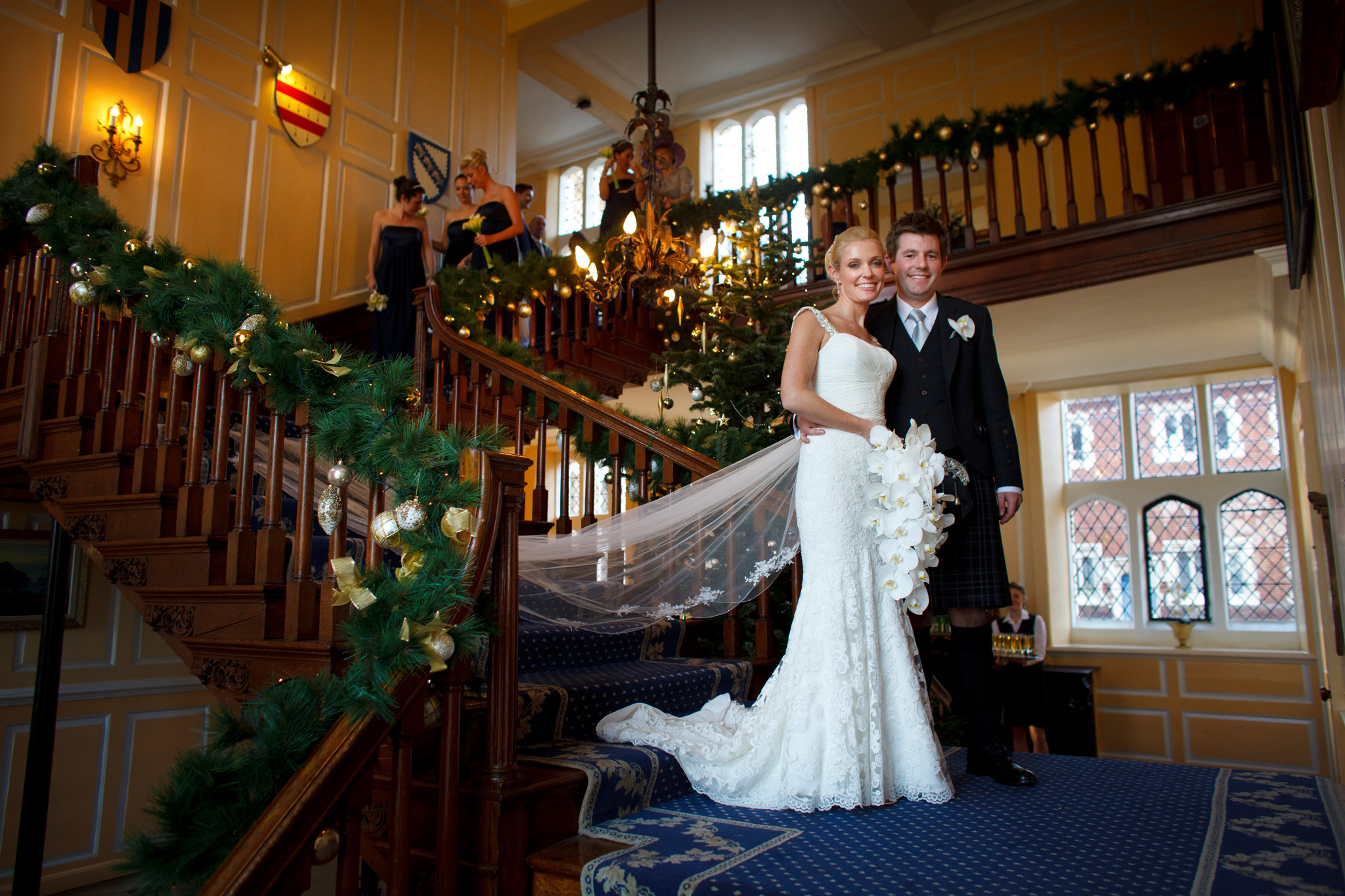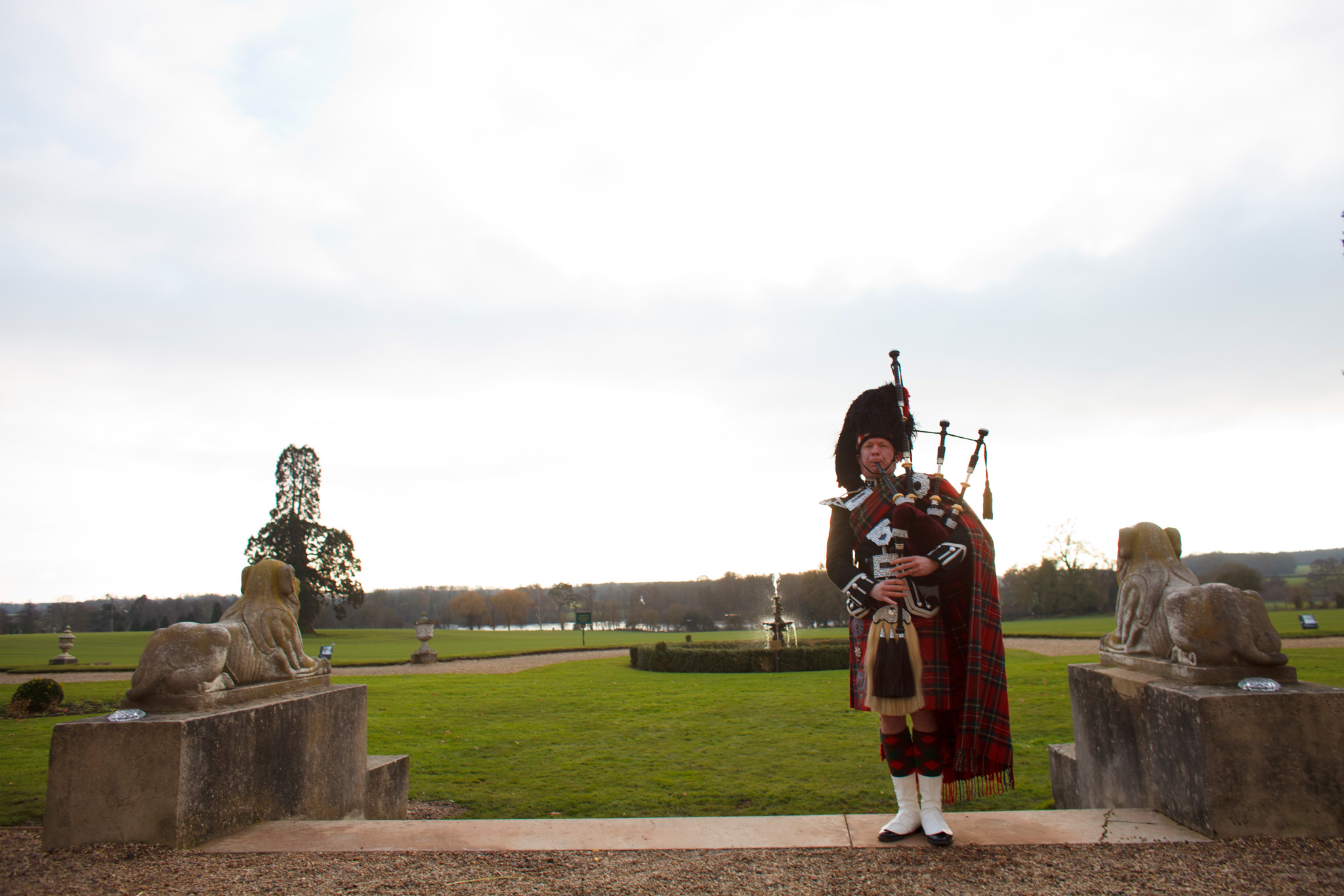 Gosfield Hall weddings. The weather forecast was bleak – however good Gosfield Hall wedding photography is, -8C and slushy snow was not going to be ideal. But for the first time in quite a few weeks, the sun came out, the day warmed up and the weather was near perfect for an early winters day. Wendy and Clark had planned that particularly well! The wedding theme was Scottish the men of the Morrison clan where in kilts and guests were pipped in by a fantastic bag piper for the day (I think Clark may also have had a wee nip of Scotch before the wedding to keep the cold out and to keep up with his Scottish heritage …) So many highlights from the day form such a fantastic couple but my favourite was singing the 12 Days of Christmas before the meal! Gosfield Hall weddings.