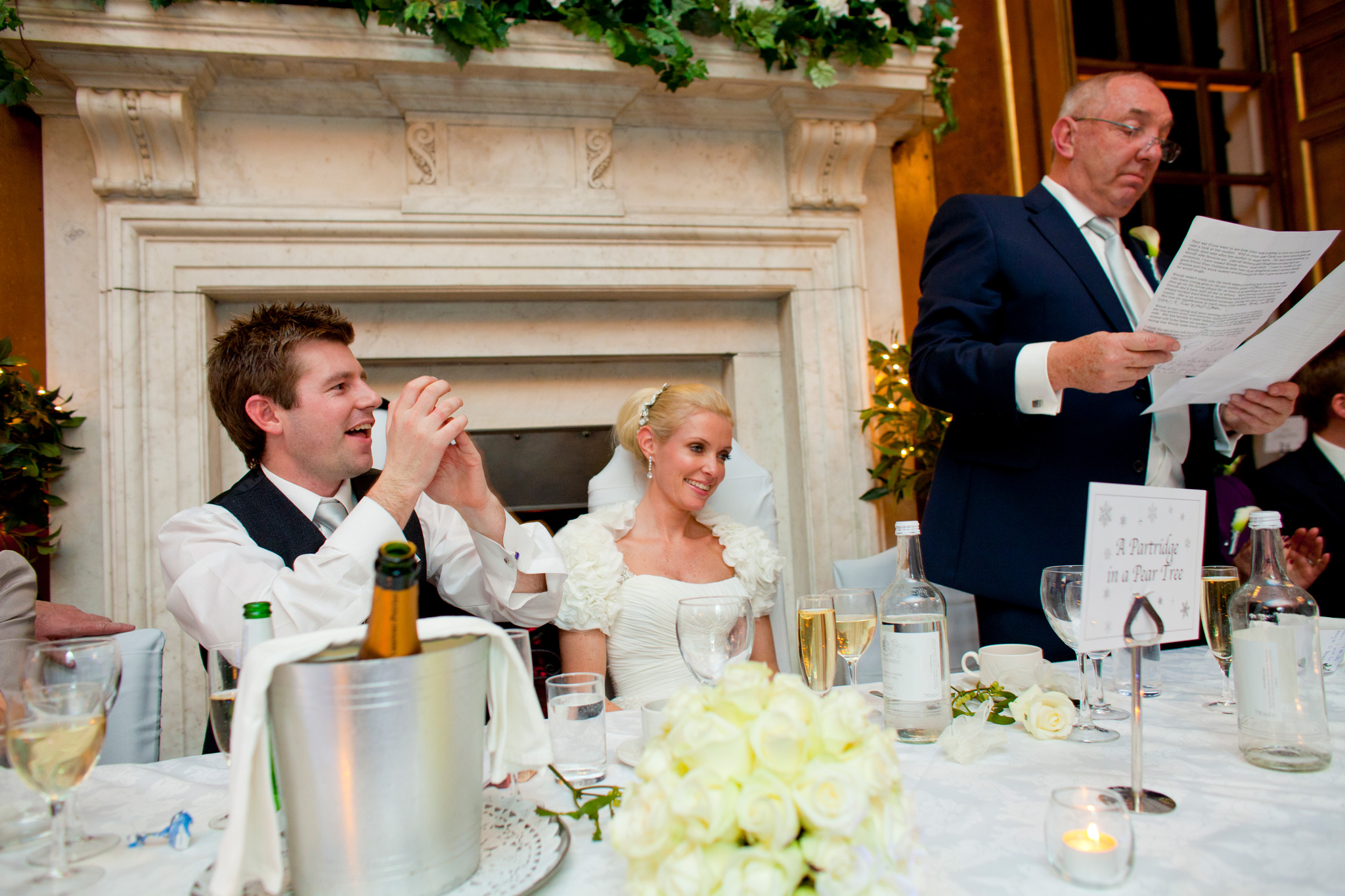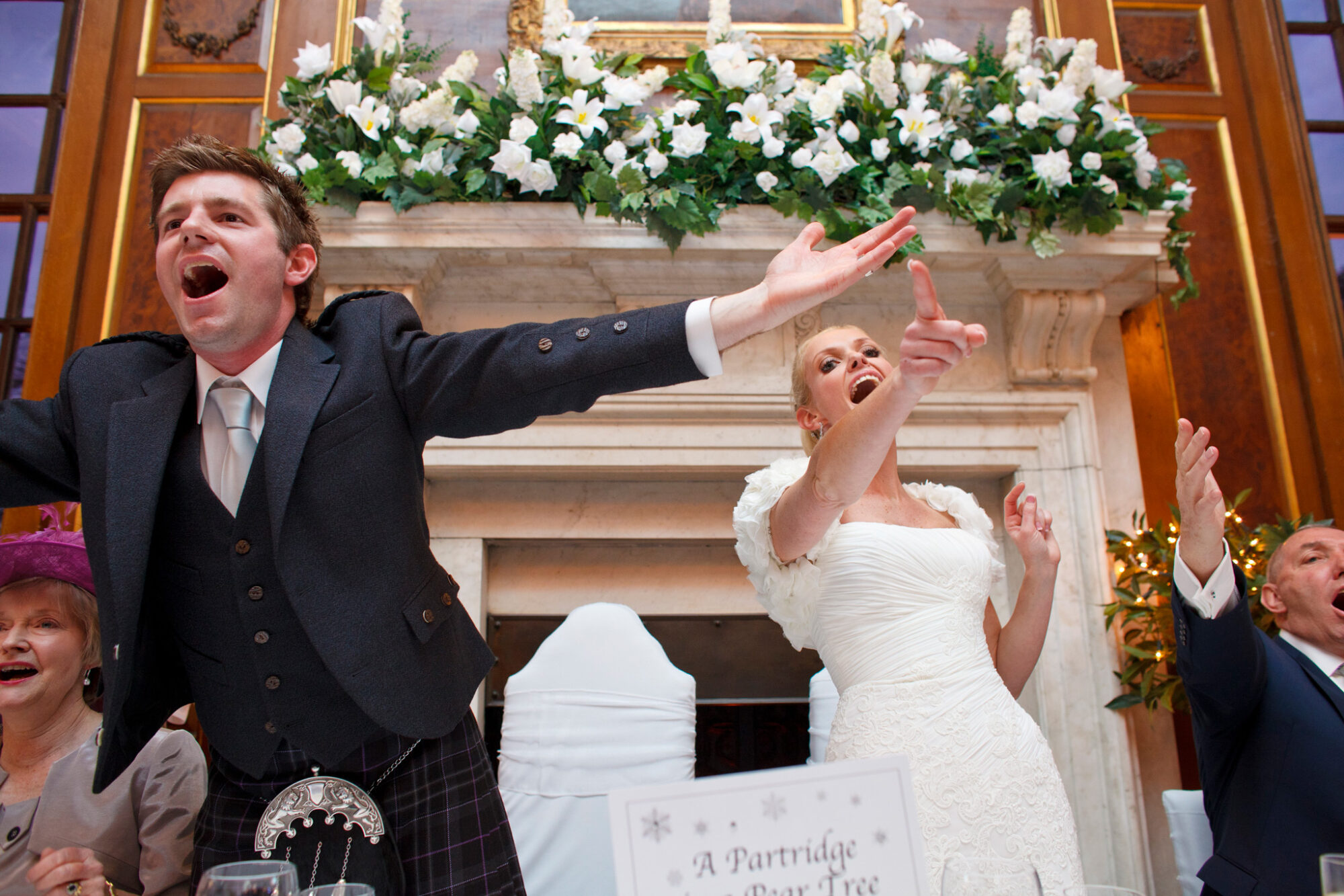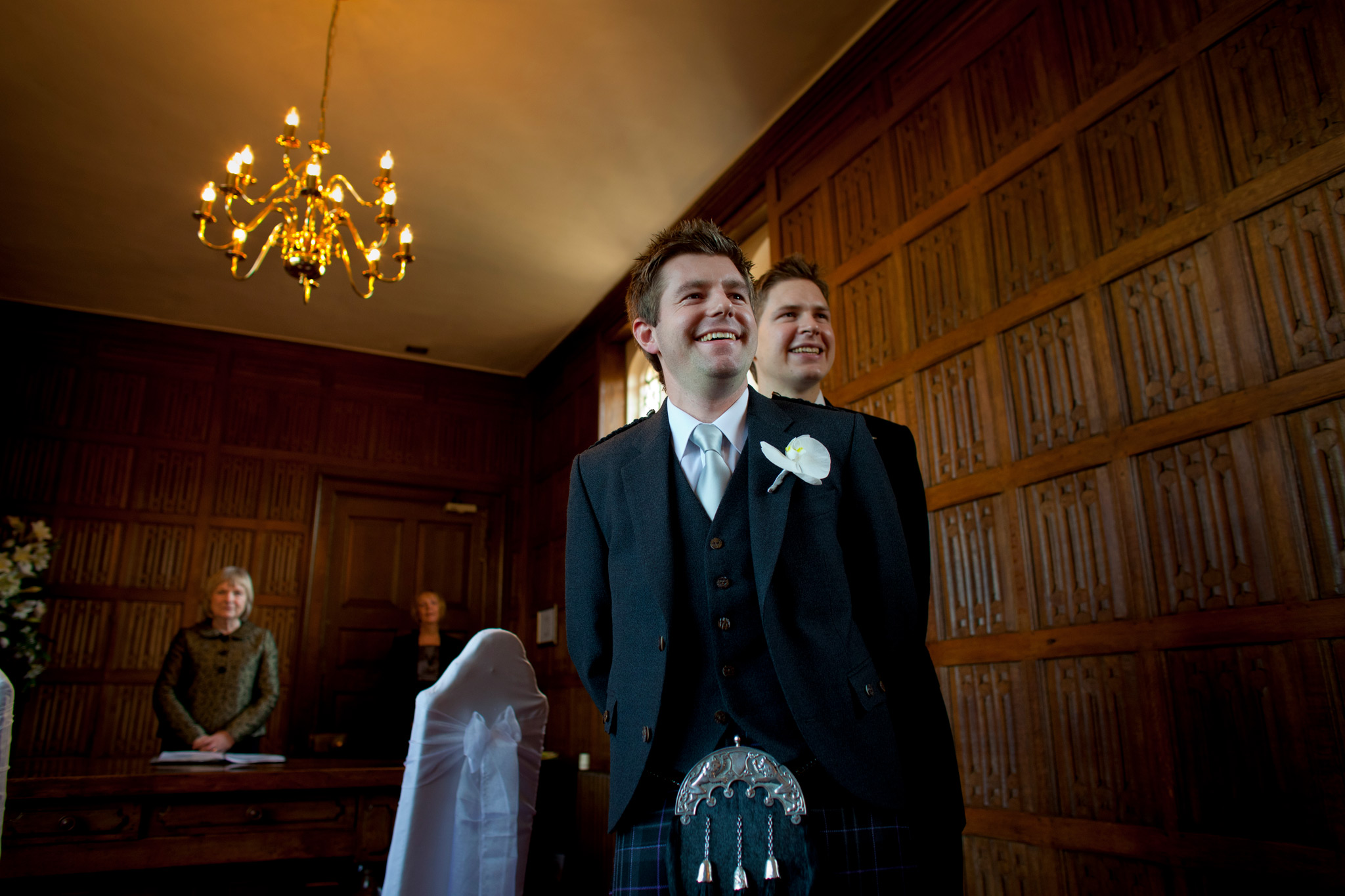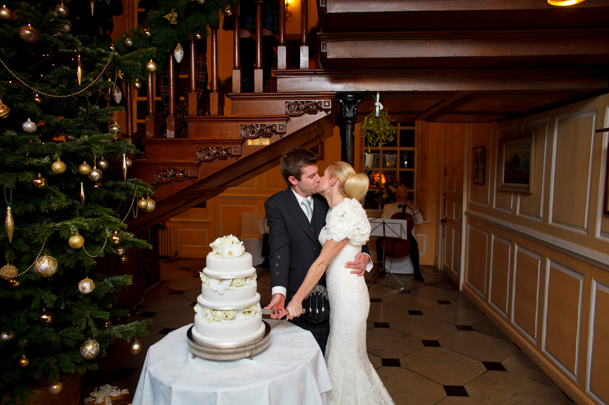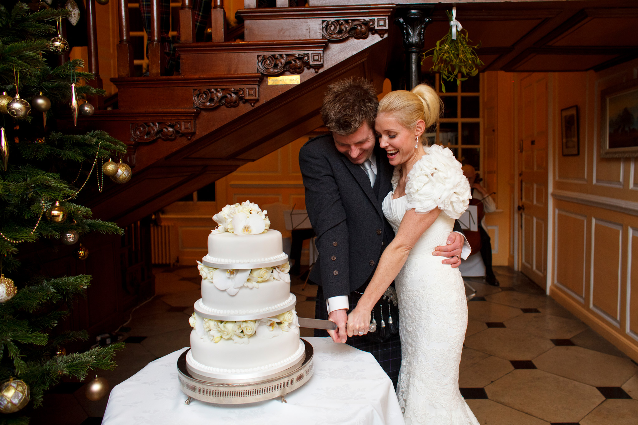 Gosfield Hall weddings. The weather forecast was bleak – however good Gosfield Hall wedding photography is, -8C and slushy snow was not going to be ideal. But for the first time in quite a few weeks, the sun came out, the day warmed up and the weather was near perfect for an early winters day. Wendy and Clark had planned that particularly well! The wedding theme was Scottish the men of the Morrison clan where in kilts and guests were pipped in by a fantastic bag piper for the day (I think Clark may also have had a wee nip of Scotch before the wedding to keep the cold out and to keep up with his Scottish heritage …) So many highlights from the day form such a fantastic couple but my favourite was singing the 12 Days of Christmas before the meal! Gosfield Hall weddings.