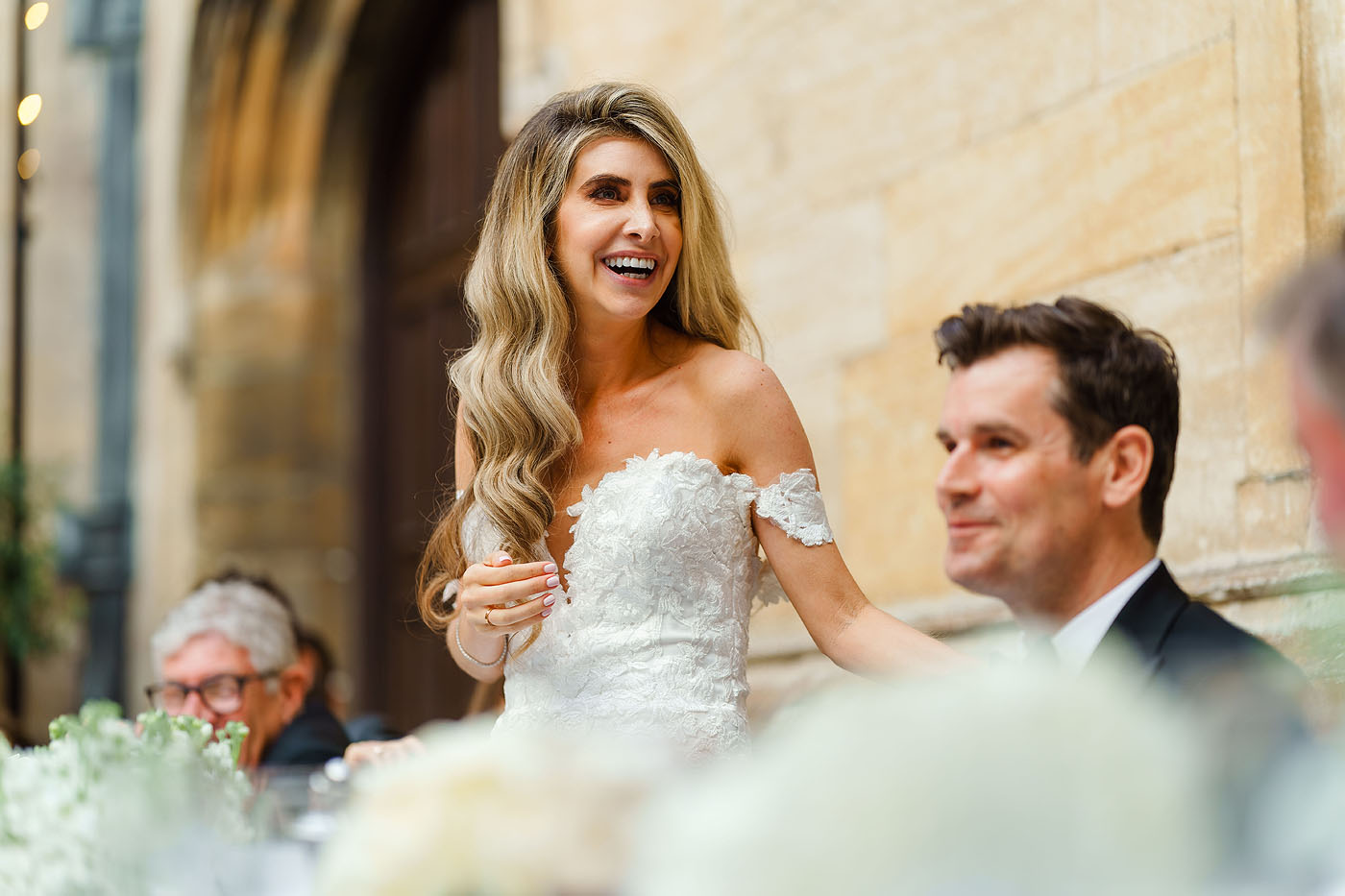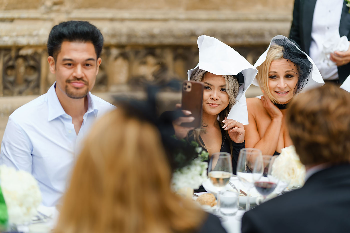 Us Brits are obsessed with the weather. We’re always talking about it, keeping an eye on the horizon for changes. Never more so than at a wedding. Everything was looking so promising all day long. Then halfway through the meal, a light drizzle kicked in. This was more rain than our Californian guests see in a year but to your average Brit, it barely registered. Certainly not enough to interrupt the excellent starters that had just been served! A few umbrellas were found and napkins used as hats and the day went on. Thankfully it was only a brief break in what was an otherwise perfect weather day.