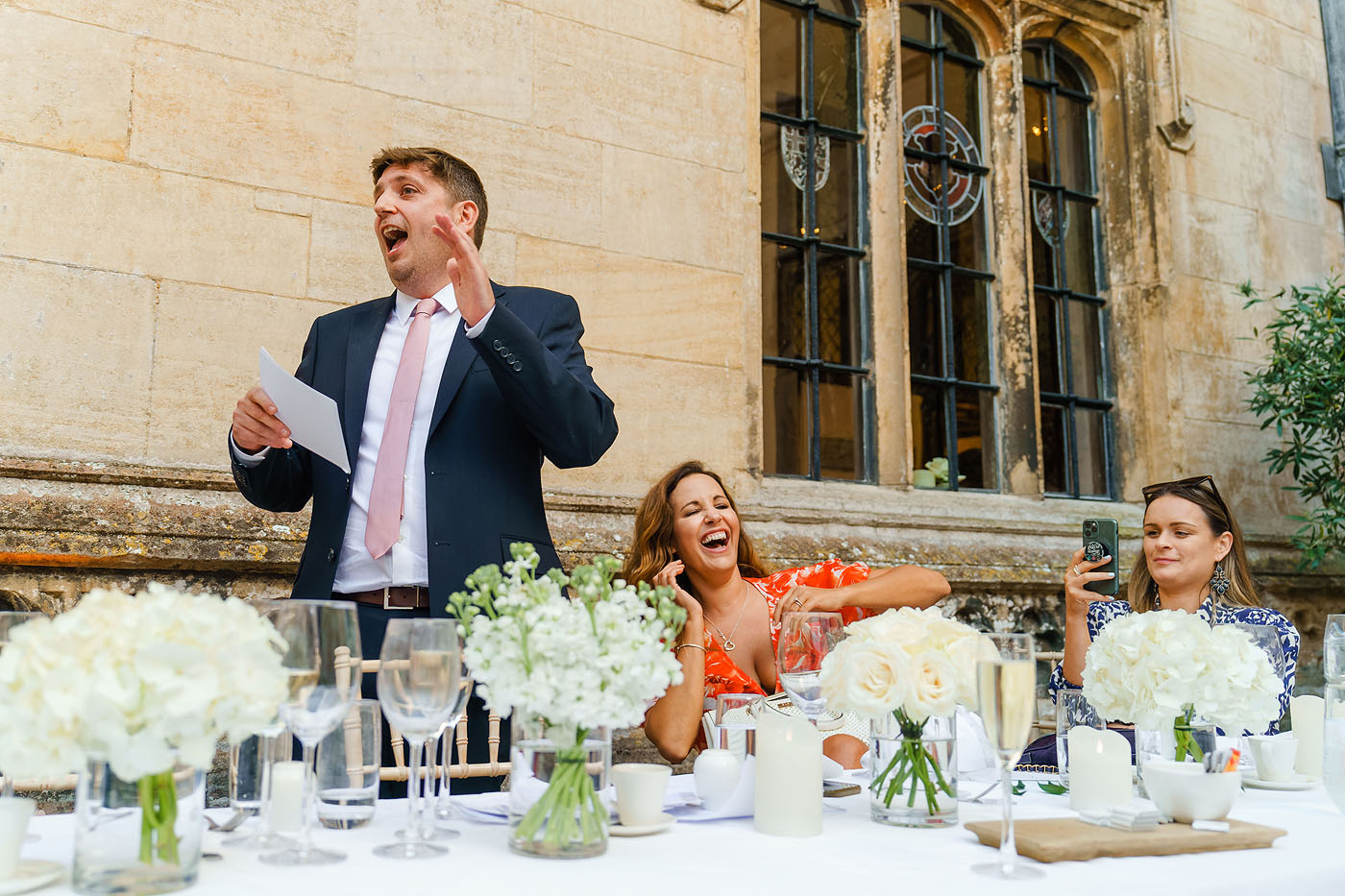 The blessing was held outdoors by the lake. It was taken by one of Robyn good friends which made for a very personal and emotional ceremony. Drinks reception on the terrace and on the lawns before heading into the inner courtyard for the wedding breakfast. The courtyard has almost a Mediterranean feel to it, such a beautiful space for the meal.